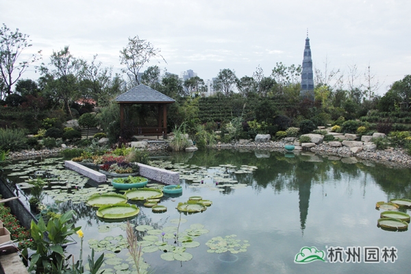 第八屆中國花博會之浙江園,又名越香園。占地總面積2500平方米,以“幸福家園”為主題,圍繞“富饒秀美、和諧安康”的生態浙江建設要求,通過浙江現代茶園、竹林、西湖、民居等基調和框架,結合吳越文化,從自然環境、綠色人居、花卉文化等方面表達浙江人民對現代生態文明建設的認知以及賦予的努力,反映浙江花卉苗木產業的發展和創新,寓意浙江燦爛的生態文明之花越開越盛,越開越香,同時也借此機會與全國人民共享花香盛宴。