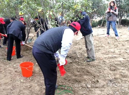 在活動現場,主持人介紹了植樹活動宗旨、植樹工作的安排后,到場的拱墅區政府領導、中國鐵建國際城副總經理倪志宇相繼發表了各自的低碳宣言。接著,各位領導拿起工具親自培土、澆水,種下了一棵棵茁壯的桂花樹,期待花香滿溢,許愿綠樹長青。杭州市園林綠化工程有限公司項目部積極做好此次活動的配合工作,助中國鐵建植樹節活動成功舉辦。