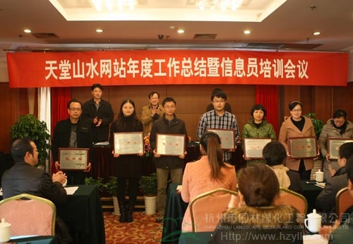 會議的重要環節之一為表彰先進。徐協平宣讀獲獎文件之后,周定炎、徐協平、繆梓倫為獲得2012年度“天堂山水”門戶網站的十佳單位、先進個人、優秀子網站進行了頒獎。其中,杭州市園林綠化工程有限公司網站被評為“優秀子網站”,于會蓮同志被評為信息宣傳工作“先進個人”。