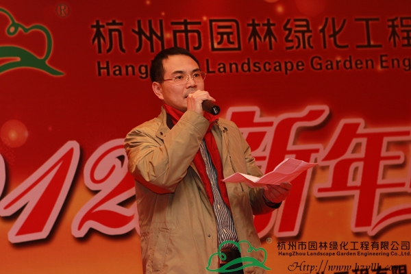 表彰儀式結束后,董事長吳光洪發表了新年致詞。吳董首先對各位領導和嘉賓的到來表示了熱烈歡迎;然后與大家共同回望了企業2011年所取得的成就,并對2012年的發展進行了規劃和展望,他感謝大家對杭州園林一路的支持與關注,希望未來仍能與大家一起攜手前行;最后,吳董舉起手中的酒杯,與大家一起為新的一年干杯,并宣布晚宴正式開始。