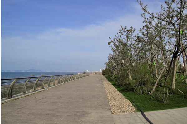 煙臺屬暖溫帶季風(fēng)氣候,但是瀕海地又受到海洋性氣候的影響,經(jīng)常受海潮海風(fēng)侵襲和土壤鹽漬化、干旱化威脅,導(dǎo)致適宜生存的植物種類少、綠化難度大。該項目緊臨海邊,因此,如何正確選擇植物品種,在提高植物成活率的同時又保證景觀效果的豐富,是其面臨的一大難題。