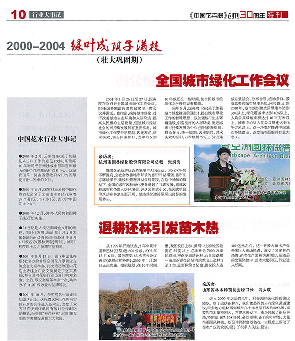 【中國花卉報】創(chuàng)刊三十周年特刊之2000-2004 全國城市綠化工作會作