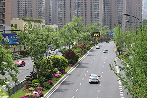 項(xiàng)目南起新業(yè)路,北至?xí)一ㄢ致罚L約1750米,是集綠化、美化、文化等為一體的景觀大道,四季特色分明。春有日本早櫻、垂絲海棠等花滿枝頭;秋有銀杏、紅楓色彩明艷,更有桂花一路飄香;夏、冬時(shí)節(jié)風(fēng)景又有不同。豐富的植物配置、色彩鮮艷的草花、文化氣息濃郁的小品……使得這條道路開闊大氣,充滿生機(jī)。