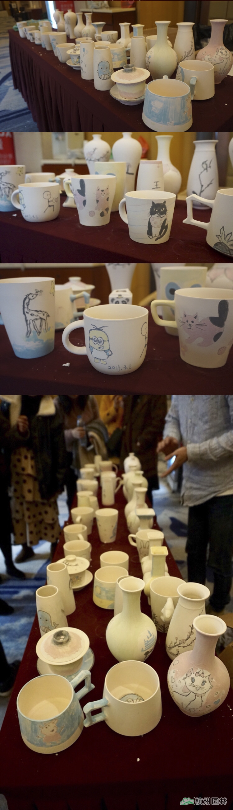 說(shuō)起陶藝,大家想到的肯定是雙手扶著轉(zhuǎn)盤(pán)上的陶泥,捏出形態(tài)各異作品的場(chǎng)景,但今天我們玩點(diǎn)不一樣的。素胚固然清爽,但少了色彩的點(diǎn)綴,總會(huì)覺(jué)得好像黑白電影略顯枯燥。是的,這次我們將畫(huà)紙搬到了這些瓶瓶罐罐之上。認(rèn)真的女人真的很美,一幅幅生動(dòng)的畫(huà)作在短短的一個(gè)多小時(shí)的時(shí)間里展現(xiàn)在了大家的眼前。有山水,有動(dòng)物,有卡通畫(huà),有說(shuō)要送給家中寶寶的,也有說(shuō)這代表了我們一家三口的。拿起畫(huà)筆的小仙女們,不再是那些個(gè)日常辦公室里的形象了,她們?cè)诮裉欤炎约旱目蓯?ài)、風(fēng)趣、溫婉、隨性等等面貌展現(xiàn)得淋漓盡致。