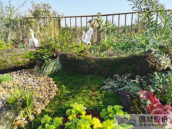 以枯木為主景,種植大灰蘚、細(xì)葉小羽蘚等蘚類植物,搭配枝條飄逸的河灘冬青,水波粼粼的淺水塘,打造生態(tài)且富有趣味的苔蘚濕地景觀,周邊小范圍種植花灌木及宿根花卉,增添色彩。
