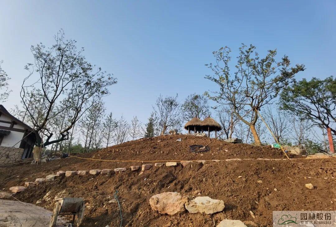 截止目前,杭州園已完成隱秀、湖畔精舍兩棟建筑背景喬木,茶園區域骨架樹和登山道銀杏林、背景喬木種植,接下來將進行灌木以及湖岸邊喬木種植。