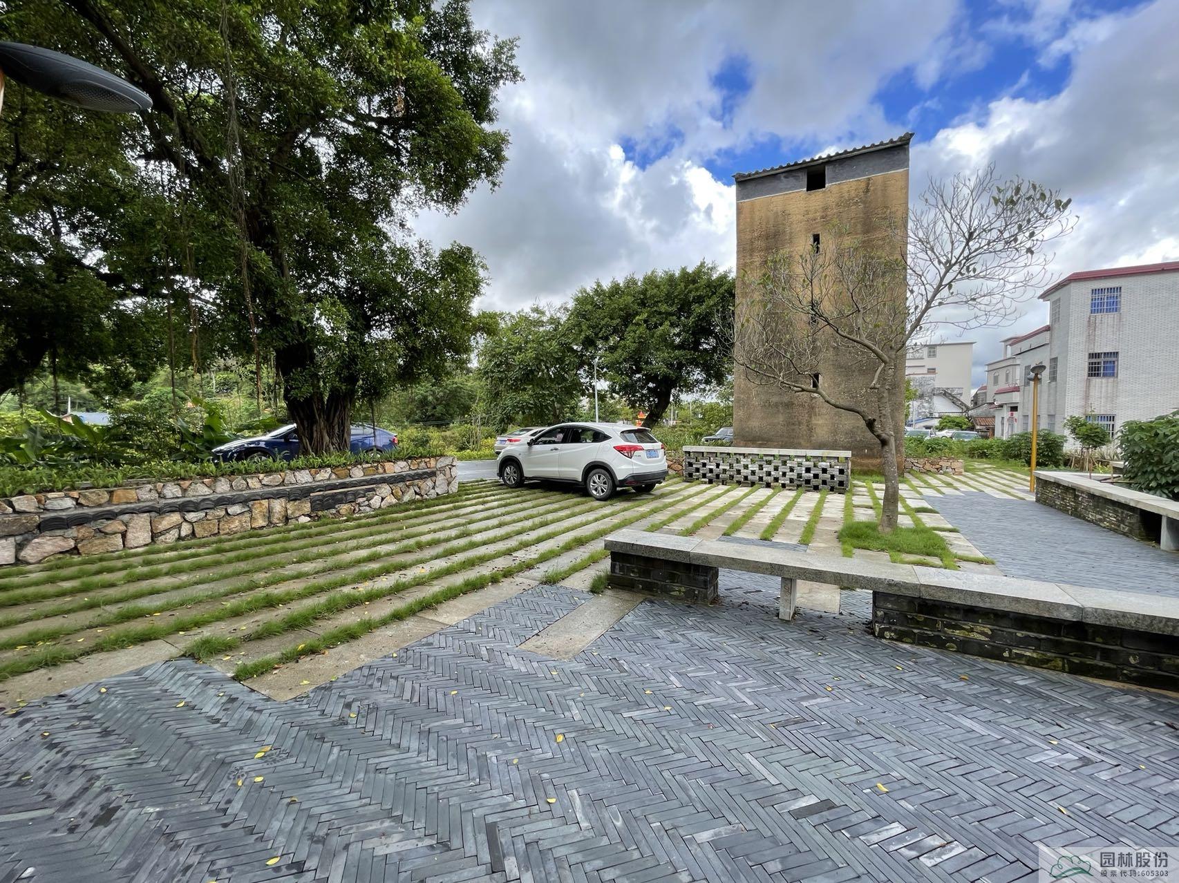 入口進入,是石咀防范匪患而建的黃泥百年碉樓,為凸出碉樓這一特殊的建筑,我們在碉樓設計開闊的,擁有與碉樓相關記憶符號的村口節點小公園。