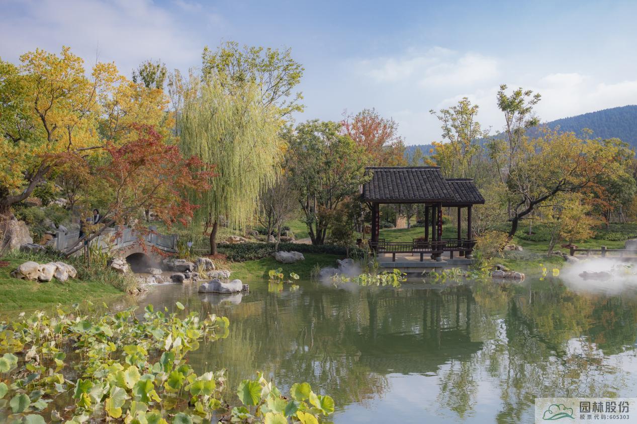 杭州園總體以西湖“景中村”為設計藍本,以“家在錢塘”為主題,通過浙派園林的造園手法,營造“竹隱”“云舍”“湖居”“問茶”“尋香”五大展區,描繪出一幅“小橋流水人家”與茶園竹林、南宋風情相交融的美麗畫卷,塑造“人與天調,然后天地之美生”的生態園林,展現宜居宜業宜游的詩畫西湖和杭州韻味。項目施工內容主要包括鋪裝工程、綠化工程、園林水系、仿古建筑等。
