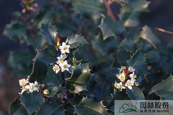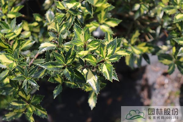 花葉枸骨Ilex cornuta 'O Spring':它的母本是我國最為常見的的枸骨,經常在溝壑、丘陵和山路旁發現其存在。由俄克拉荷馬州的一名苗圃工人Otto Spring發現的變異。常綠灌木或小喬木,屬于雄性植株。葉厚革質,有光澤,葉形呈四角狀長圓形,葉緣常反曲,在春季,葉緣呈現黃油色調,到了秋冬季則會變成金黃色,莖稈也會變成紫色。適合種植在庭院、公園、街道等地方,可以作為綠籬植物使用,也可以修剪成小樹的形狀。對土壤適應性較強,幾乎可以在任何土壤中生長,而且具有耐干旱和高溫的特性。因此,它是一種簡單耐用的冬青品種。