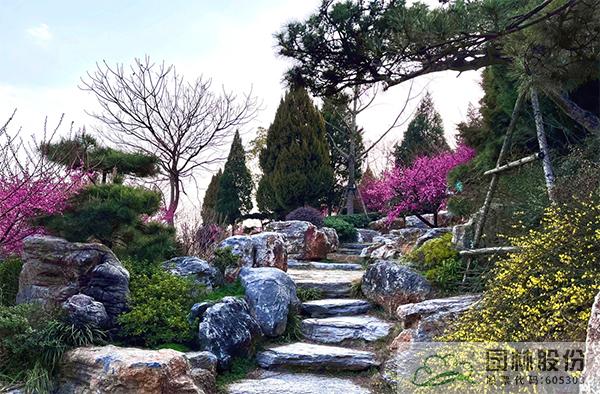 運(yùn)用山石點(diǎn)綴園林空間,比如:路石、駁岸、擋土墻、石磯、踏步、護(hù)坡、花壇,既造景又具實(shí)用功能;石材的機(jī)理及質(zhì)感在環(huán)境中可起到點(diǎn)晴作用,使園林空間層次感及深度得以加強(qiáng)。