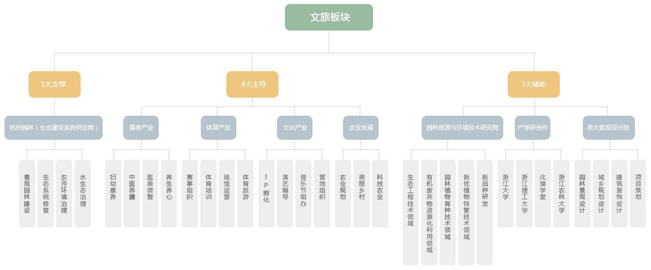智慧文旅板塊(簡稱杭園文旅),秉承 “以生態促旅游,以旅游促發展”發展理想,緊隨美麗中國、鄉村振興戰略的指引,以新江南園林為核心特色,圍繞“宜居、宜業、宜游、宜養”核心理念,確立旅游景區、消費產業聚集區與新型城鎮化發展區,三區合一發展思路,文化、農業、旅游三產融合,新模式、新業態、新路徑三位一體的建設模式。鍛造以鄉村振興為支撐,以現代化農業為基礎,打造一二三產融合、資源稟賦的集康養、教育、體育產業為主導,文旅+農旅為輔助的文旅體系。
